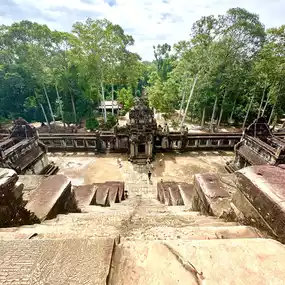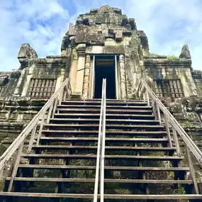 The Takeu temple is sometimes called the "Temple in the Sky" due to its impressive steep staircase and 50-meter-high central tower. Visitors can enjoy a sense of adventure as they can view the magnificent scenery of the surrounding jungle and temple complex while climbing the steep staircase. ✨