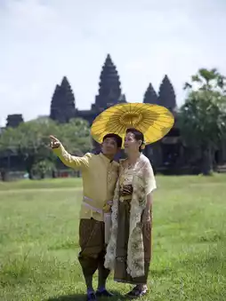 Start your day early to witness the breathtaking sunrise over Angkor Wat, the world’s largest religious monument. As the golden hues reflect on the temple’s intricate carvings, you'll understand why this UNESCO World Heritage site is a must-see. Take your time exploring its detailed bas-reliefs and towering structures. Tip: do not forget to try Khmer traditional clothes to take pictures 🥰