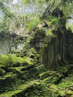 🌿 Ta Prohm Temple: Marvel at the unique stone-pile architecture intertwined with natural vines, creating a captivating scene at every turn.