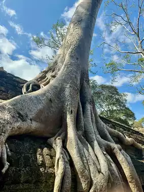 DAY 3: Angkor Thom🏞️->Bayon Temple (Twelve Faces Tower)🗼->Ta Prohm Temple🏯->Angkor Wat🕌. Explore the ancient Angkor Thom, admire the exquisite carvings of the Bayon Temple, experience the tranquil atmosphere of Ta Prohm Temple, and finally, marvel at the grandeur and mystery of Angkor Wat.