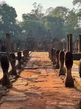 Day 4: Visit Banteay Samre—Admire the intricate carvings of Banteay Srei—Venture into the ancient ruins of Beng Mealea—Ascend Phnom Bakheng for a magnificent sunset 🌅.