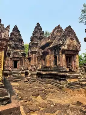 DAY 4: Visit Banteay Srei, appreciating Buddhist art β Explore Banteay Srei, admiring the exquisite carvings β Visit Bakong Temple, experiencing the tranquil atmosphere β Pray for blessings at the Preah Ang Chek Preah Ang Chorm Shrine, experiencing local beliefs β In the evening, explore Siem Reap Pub Street π», experiencing the nightlife β Visit Angkor Night Market, savoring authentic local snacks π.