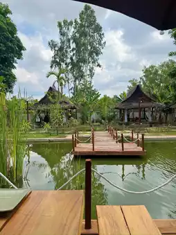 Prahok Chamkar in Siem Reap feels like a hidden farm retreat more than a restaurant. Lush gardens, wooden pavilions, and free-roaming goats, chickens, rabbits, and birds create a rustic, family-friendly charm. The Khmer food—especially dishes with prahok—is bold, intense, and flavorful. Highlights include honey-glazed chicken, crab lime dip, and pork with prahok. A laid-back, memorable spot worth a detour. #siemreap #cambodia #angkorcomplex #angkorwat #吳哥窟 #暹粒 #柬埔寨
