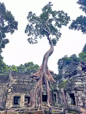 3.  *Ta Prohm*: Dating back to the late 12th and early 13th centuries, it's known for the way the jungle has reclaimed it, with tree roots growing over and through the stone structures.