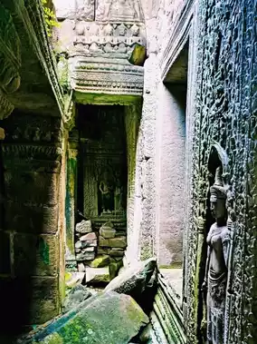 While the ascents are challenging, those who conquer the stairs are rewarded with panoramic views over the jungle canopy. The bare sandstone walls glow golden at sunrise, while afternoon light reveals tool marks left by 11th-century masons.