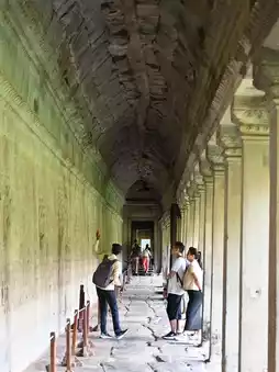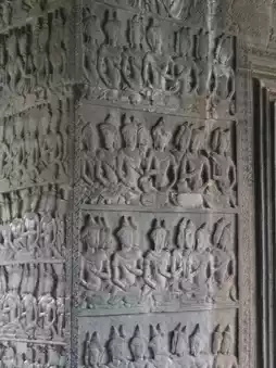 Walking the gallery’s shaded corridors feels like stepping into a whispering stone library. Fingers instinctively trace the cool, intricate carvings—gods and demons locked in cosmic battles, armies marching in eternal stone processions, and celestial dancers frozen mid-sway. The sheer scale is humbling: these panels stand 2 meters tall, wrapping you in stories older than Gothic cathedrals. When afternoon light slants through pillars, shadows animate the reliefs—Apsaras seem to sway, arrows fly, and the Churning of the Ocean churns anew.