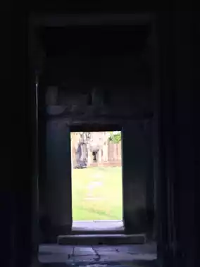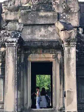 These courtyards are Angkor’s secret lungs—breathe deep, sit on sun-warmed stone, and let the devatas guard your solitude. Pair your visit with icy sugarcane juice from a vendor near the moat, then watch storm clouds gather over the jungle from the South Library steps. Chouk sâ b