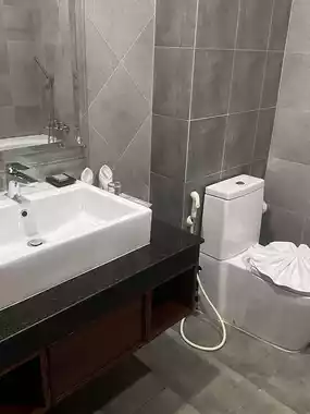 The rooms are spacious, clean, and renovated, making for a comfortable stay. Facilities like an outdoor pool, poolside bar, and gym are also great for a relaxing stay.