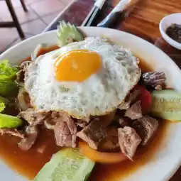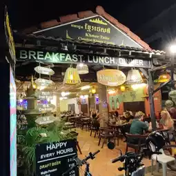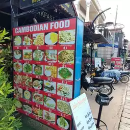 They serve variety delicious foods got Western, Cambodia, Thailand cuisine for breakfast, lunch and dinner open from 0700-2300 hrs.Their fruit shake is very nice and thick. Most of the dishes come with a love shade rice... look so sweet😃. I had order their local dish Beef Lok Lak, Chicken Amok and Sleeping Cow. All taste very nice and price is reasonable.
