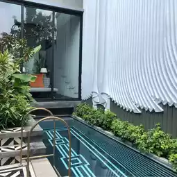 The villa comes with a private pool and a private rooftop. Inside, there is a large, comfortable bed and an outdoor bathtub that connects to Bluetooth for us to listen to our favorite music from our mobile phones.