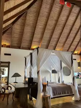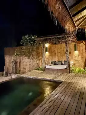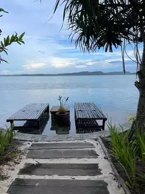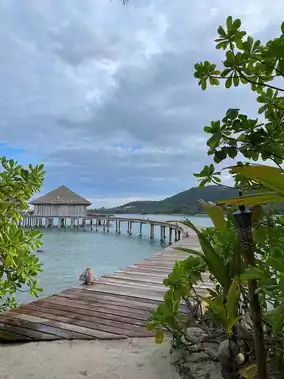 It really feels like heaven🧡 Luxurious private island, great location. Spacious room in a single villa over the water with a private pool It will be an unforgettable experience💜 The furniture and furnishings are made from recycled wood, and some of the old shipwrecks are bought from fishermen and made into tables, chairs, etc. in the island's own carpentry shop😇🪟 I was happy during the short time I was on the island☺️🍀