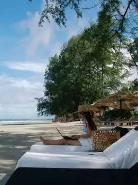 Enjoyed some leisure time on the private beach and had a romantic moment working on the beach with a cup of coffee ordered from the hotel cafe!