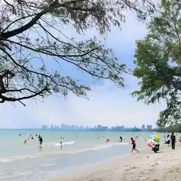 The longest beach in Cambodia, that is in Sihanoukville province. There are many place for people to visit such as Independent beach, white horse beach, Sokha Beach and so on, but the popular and attract more people to come were O Chher Teal Beach and Otres Beach. Both are connected to become the longest one that can receive more than 1,000 personal cars of tourists to visit there.