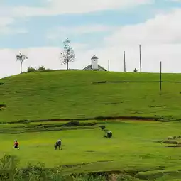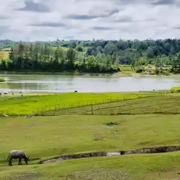 Green and very wide grassland. Because it is so wide, many animals such as buffalo roam freely here. On top of the peak there is a church. Not far from there is also a lake on the lake is not too big but the beautiful scenery can be very pleasing to the eye. Feels like being in a movie, a very refreshing view. Running on the soft grass adds to the excitement. Very suitable for a place to relax from daily activities.