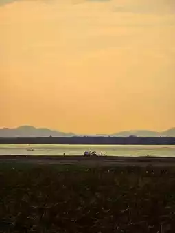 In the evening, around 5:30 to 6:00 p.m. is the magical time here. The orange sunlight slowly melts on the water, reflecting and sparkling like gold. The mountains, the sky, and the water are so mellow that even photos can’t fully describe it.
