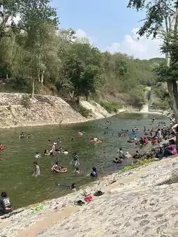 💦 Behind the dam, water is released, flowing along the canal to Korat city. During the Songkran Festival, tourists come to play in the water. ##Play in the water to cool off