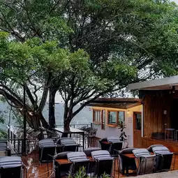 A super chill place with a great atmosphere and a view of the Lam Taklong Dam.