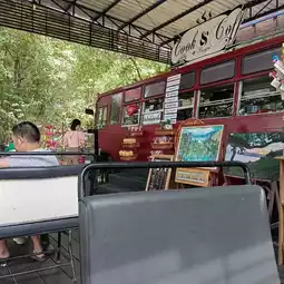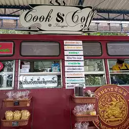 🏞️🏞️Cook & Coff @klongpai coffee shop, a chic and chill coffee shop located on the Lam Takhong Dam on Mittraphap Road, a little past the restaurant line along the dam. Turn left and go in for about 1 km. There will be a resting area and a viewpoint of the dam. ☕☕☕The coffee shop is an open-air shop. The coffee making area is a hot bus with chairs taken off and arranged as tables for sitting. The shop has coffee and various cakes to choose from. The coffee tastes good, strong, and the price is not expensive. Importantly, the by-product of the shop supports Klong Pai Central Prison. It is considered a merit-making activity.