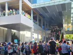 Mini concerts go back and forth. There are a lot of people.