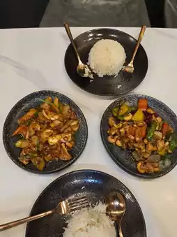 We ordered two dishes: Chicken with Cashew Nuts and Squid with Salted Eggs. They were delicious with hot steamed rice. It was incredibly satisfying, and the food was even more delicious when you're hungry. We're not sure what time the restaurant closes, but we went around 9:00 PM. It was still open, and the place was packed with customers.