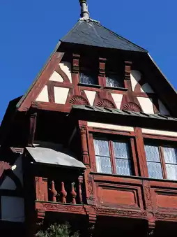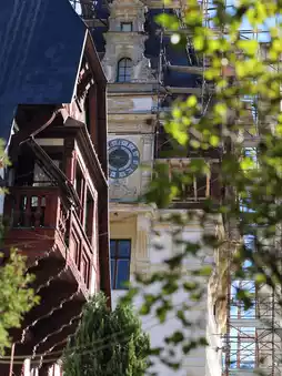 Even though the castle is currently undergoing restoration, just walking around it reveals glimpses of its original beauty—the Bavarian fretwork, the arched windows, and the clock that still seems to be silently telling the same time.