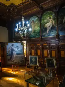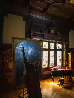 From the armory, littered with battle tales, we step into a quiet room filled with artistic insights. This room has a completely different atmosphere than the others, as it was built as a haven for readers and artists.