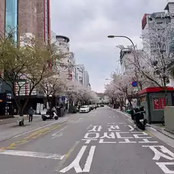 Every spring, the avenue outside Shinchon Metro Station (Line 2) quietly puts on a new pink look. Walk out of Exit 2 or 3 of Sinchon Station and you will see streets lined with cherry blossoms in less than a minute. This short road is particularly charming during the cherry blossom season. The flowers on the treetops bloom into a romantic pink and white. When the breeze blows, the petals gently fall with the wind, like being in a spring fairy tale in the city.