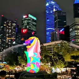 6.The Merlion: A famous landmark that features the head of a lion and the body of a fish, which symbolizes Singapore's origins as a fishing village and its transformation into a modern metropolis.