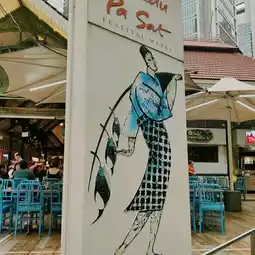 From China Town I walked to Laut Pa Sat à huge food court area with a South East Asian street food vibe. They have the best Sate in town. But you will find all kinds of food there and it's a very lively dinner spot! 🍲😋🍜 Then I walked all the way to Raffles Place, Singapore’s Financial Center🏦🏙️ . The sun started to set🌇 and the view on the Marina Bay🌅 was magical. By the time I was there around 6pm business people started to be off work and enjoying after work drinks🥂🥃 with the view on the Marina Bay. If you don’t want to sit in a bar, there are also a lot of seating places, very peaceful to rest or read a book. That’s also where you find the famous statue The Merlin, Singapore’s symbol and the famous Flight Bar & Lounge with the infinity pool.🥰