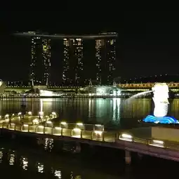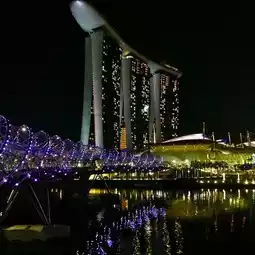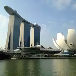 Marina Bay Sand resort, a fancy building complex with hotel casino museum and swimming pool at the top! all facing facing Marina Bay.