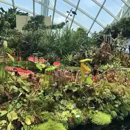 It features the Cloud Dome, home to the world's largest indoor waterfall, and the Flower Dome, a glass greenhouse.