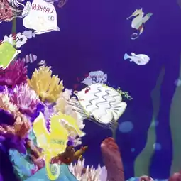 The sea has pictures to color, such as various fish. Then, we can take the pictures to the printer and make them into paper to assemble a model. The model will have the color we colored.