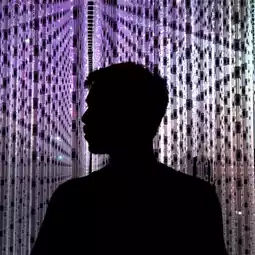 The next zone is a play on light. We can press any part of the large projector (which is as big as a wall) and the picture on the screen will change.