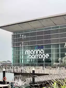 🚆 Take the MRT Brown Line 🟫 and get off at Gardens by the Bay (TE22) station. Take the escalator up and you will see the Gardens by the Bay South sign. Keep walking along. Look to the right and you will see the Marina Barrage sign.