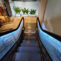 Just when the car comes down, we can see the escalator with beautiful lights. Importantly, you can enter here, no one will stop you. Let me tell you, this hotel is very beautiful.