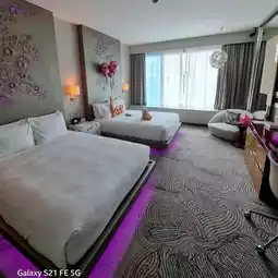 Situated in the heart of Sentosa Island, this vibrant and stylish hotel takes luxury to a whole new level. I liked the playful and energetic atmosphere, changing neon lights, music. We even had a cute plush bear 🧸 and anniversary cake waiting for us in the wonderful double room.