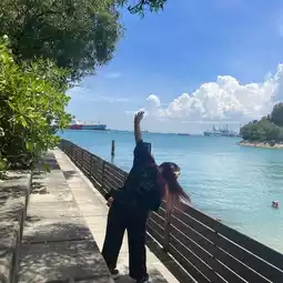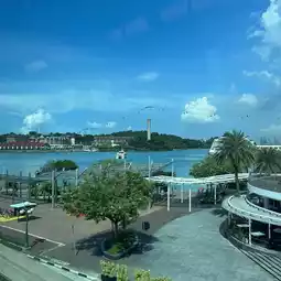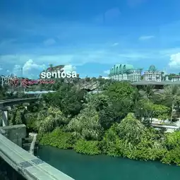 And the tourist attraction that I would like to recommend today is S.E.A Aquarium. You must be confused as to why we have to go to see fish in Singapore. I would like to tell you that the atmosphere here is very beautiful. The journey starts from having to take a car across to Sentosa Island first. The fare is 4 SGD or about 100 baht. It is an island with many places to visit, including famous places like Universal Singapore. But today, we will only take you to the aquarium because we have limited time. Inside the aquarium, there are many fish and aquatic animals, including very rare stingrays. There are beautiful and cool photo spots, as well as souvenir shops. If you leave the aquarium and walk a little further, there will be a beach where you can take pictures. Most importantly, Singapore has the most natural light.