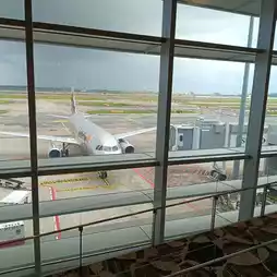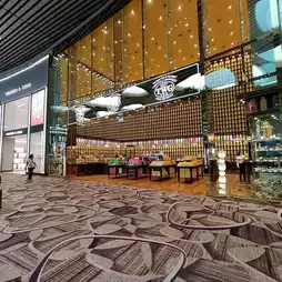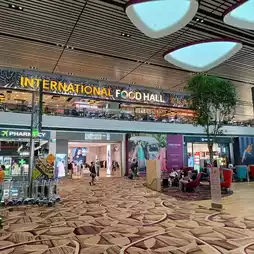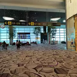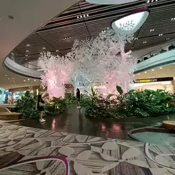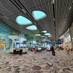 Changi Airport Terminal 4 is a whimsical wonderland, bursting with energy and surprises at every turn. The airport's signature spaciousness is on full display, thanks to a towering ceiling and strict height restrictions on equipment and machinery. The pièce de résistance is the Central Galleria, a stunning 300-meter-long, 18-meter-wide, and 23-meter-high space that separates the public zone from the transit area. This transparent masterpiece offers a clear view from the check-in hall all the way to the boarding gates, making long goodbyes a breeze.