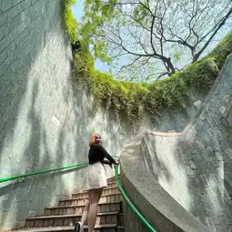 Fort Canning Park, a green tunnel landmark for people who like to take pictures, strange angles, people who conquer the landmark like to come here. You can travel by MRT, get off at Dhoby Ghaut MRT Station, Exit B and walk further. If you come early, you can take pictures quickly because you have to stand in line for a long time. Because on the day I went, there were people taking pre-wedding photos. If we didn't rush to come and go back and it wasn't this crowded, we could look at it for a long time. This place is beautiful. It's a rare view. And this place has a ramp for the disabled, which is considered a good design. This tunnel is prohibited for bicycles. Drive in according to the sign. #tripแจกโรงแรมฟรี #Singapore #fortcanningpark #singapore #visitablepark