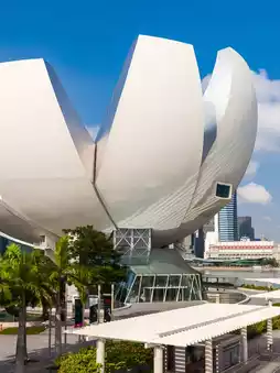 The shape is unusual. It is located in the Marina Bay area. Most importantly,