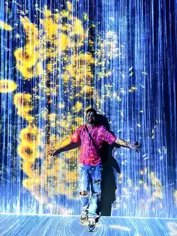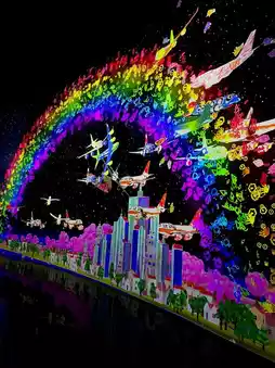 There are different interactive installations where you can play and draw. It's a perfect example where Art meets science.