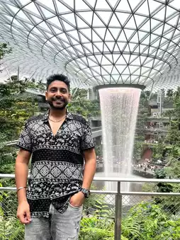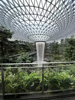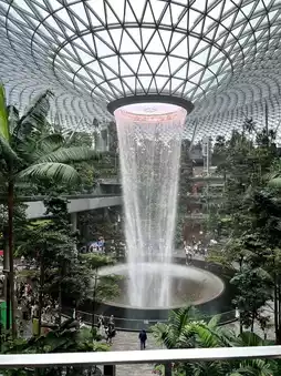 It is famous for being world's tallest indoor waterfall. It's located at terminal 3. One of the best attractions at this beautiful airport.