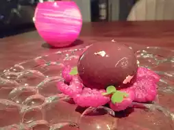 An Apple sherbet with vanilla crumble refreshed my palate, paving the way for the exquisite dessert—Giffoni Hazelnut, Guanaja Dark Chocolate, and raspberry. Hazelnut's creaminess, Guanaja Dark Chocolate's intensity, and raspberry's sweetness fused seamlessly.
