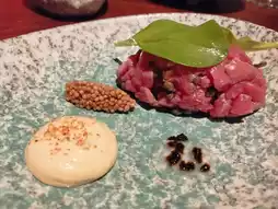 The journey started with Robbins Island Tasmanian Wagyu Beef tartare, with Oyster leaf and Sea Water—a divine blend. Marbled Wagyu beef melted, while Oyster leaf's brininess and Sea Water's saline essence enhanced it.
