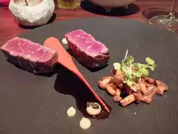 For the main course, the MBS 8-9 Yugo Wagyu Beef striploin in Pizzaiola sauce was a delight. Cooked perfectly, the beef was elevated by tangy sauce and Blue Foot Mushrooms' depth, while Pink Garlic provided a harmonious contrast.