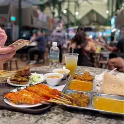 Lau Pa Sat Fastivel Market is a large food center (hawker center) open 24 hours and this place is also the location of "Satay Street", Singapore satay. Every day from 7 pm onwards, the street will be "closed to sell satay". Anyone walking in this area will smell the fragrant charcoal stove, grilling satay with thick smoke, the original Malaysian taste, many shops are open for sale.