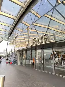 We walked out of Exit 17 and went up the escalator 1 floor. Then we found it. The waterfall is on the 2nd floor of the Jewel building. It is not hard to find.