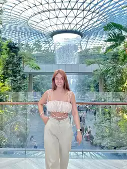 It can be said that this is another highlight of Changi Airport in Singapore. It is the largest and highest indoor waterfall in the world, reaching 130 feet high. It is really beautiful. If you come to visit Singapore, stop by and visit The Jewel. This place is a great combination of nature and buildings. It is beautiful and green all over.