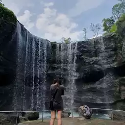What's the best thing about this place? It offers free entry, and you'll be greeted by a beautiful cascading waterfall modeled after Indonesia's famous Madakaripura Waterfall. Additionally, there are plenty of playgrounds in the area, making it perfect for a family trip. You'll also find numerous eateries nearby, including the Michelin-awarded Birds of Paradise Ice Cream.