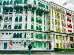 This building used to be the Police Headquarters (The Old Hill Street Police Station) and in this area was also the first prison of Singapore. The highlight is the rainbow-colored windows. The 6-storey building has many windows of the same size and shape on every floor. Has anyone ever counted how many? 555+